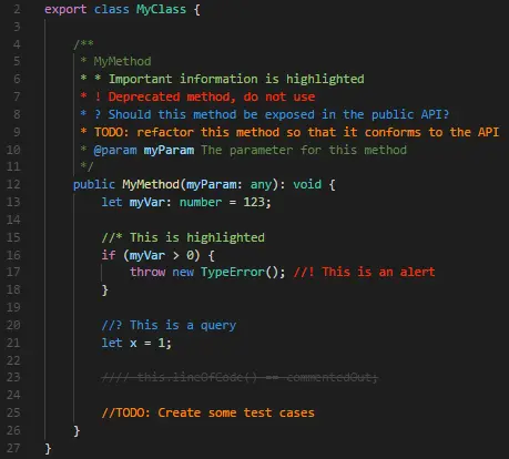 这个插件的作用是能够让你的注释看上去更加的有区分度,我们可以让注释拥有不同的颜色。具体如下图所示。