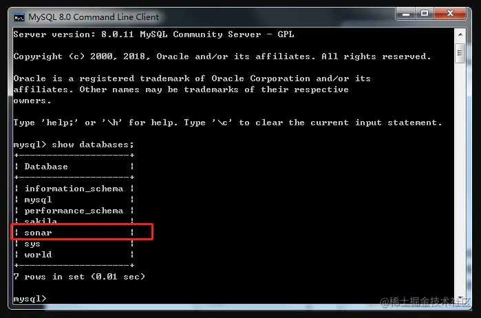 (1) 安装完 sonar 还需要创建 sonar 的用户和数据库,使用 MySQL Command Line Client输入以下命令创建(或者使用 Navicat Premium 客户端来建立一个 Sonar 数据库)