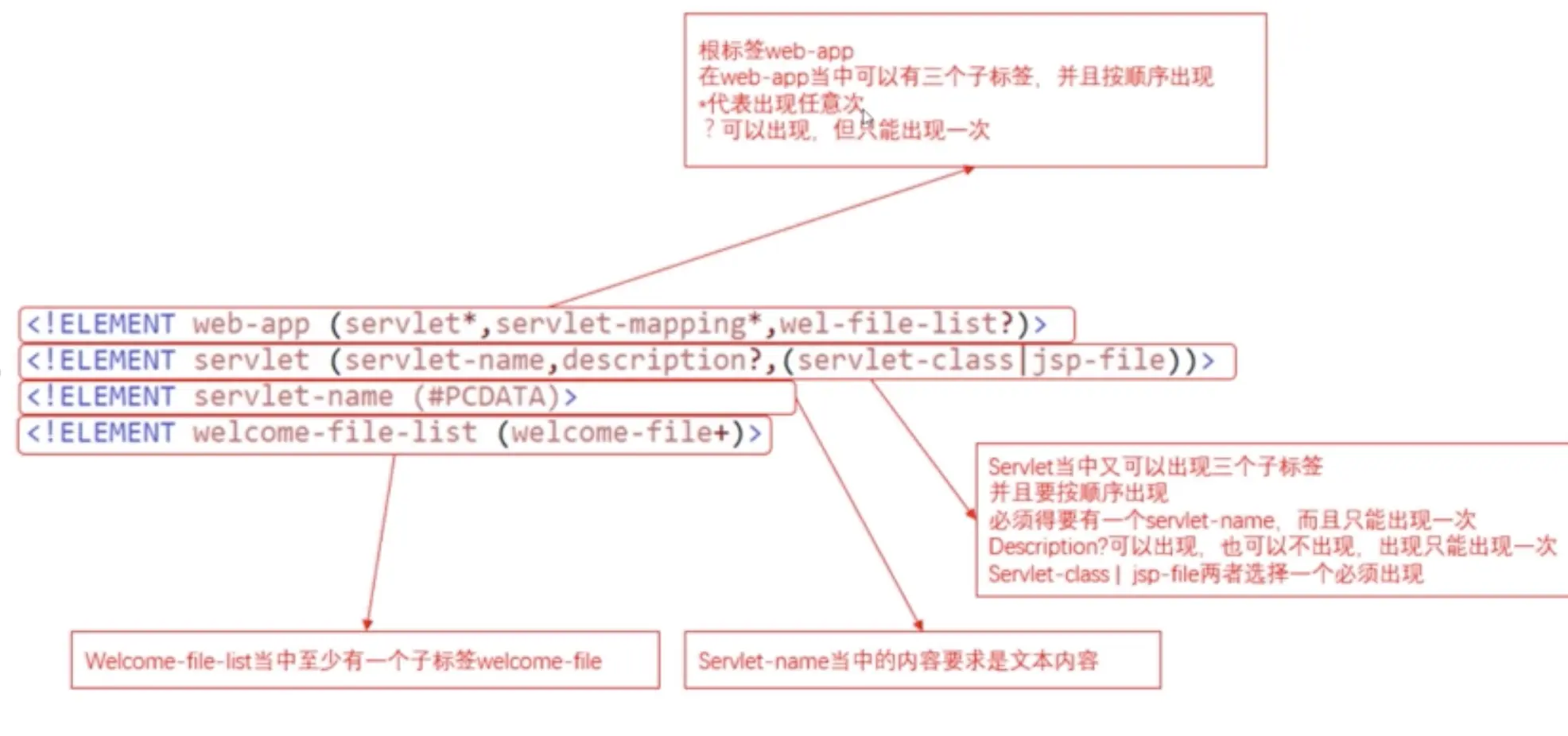<! ELEMENT web-app (servelt*, servelt-mapping*, wel-file-list?)>