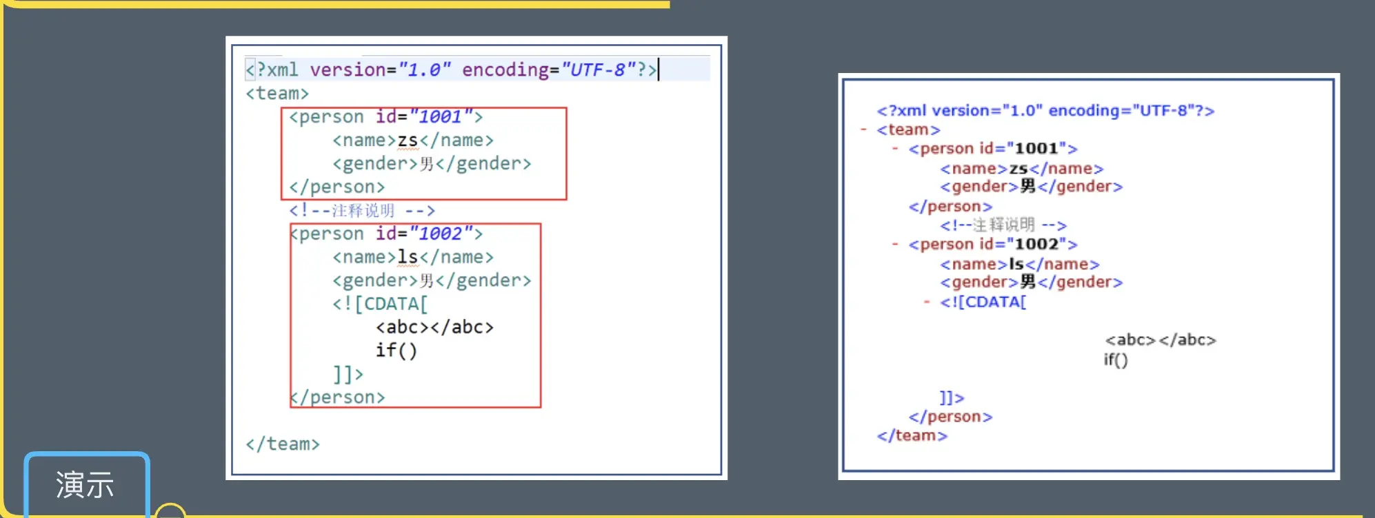 2、 XML设计的宗旨是用来传输数据的不是用来显示数据的
