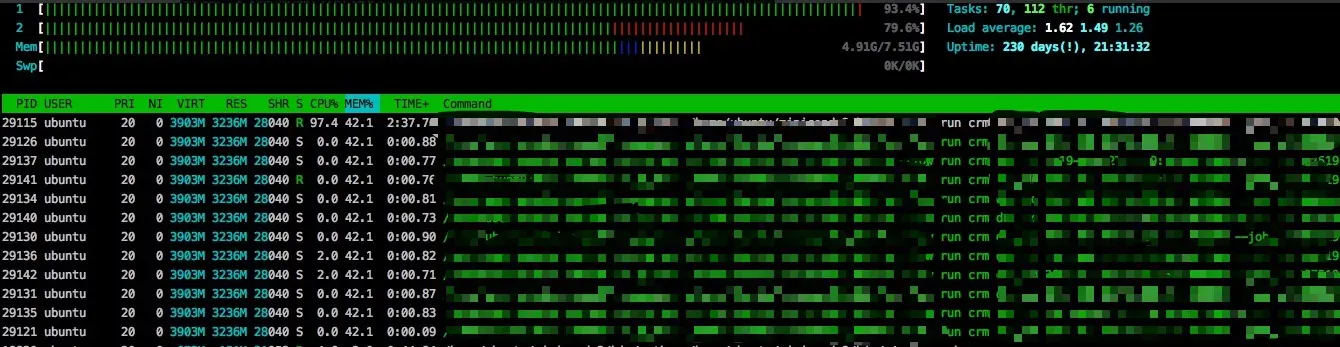 用htop查看刷数据机器的性能
