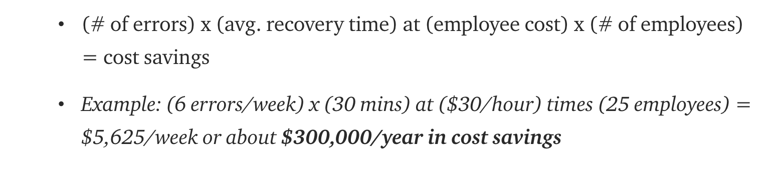 (减少的错误数量)x(平均恢复时间)在算上(员工成本)x(员工人数),就等于节省的成本了。