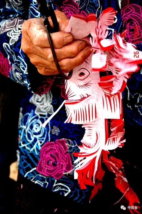 ■刘兰英正在剪纸