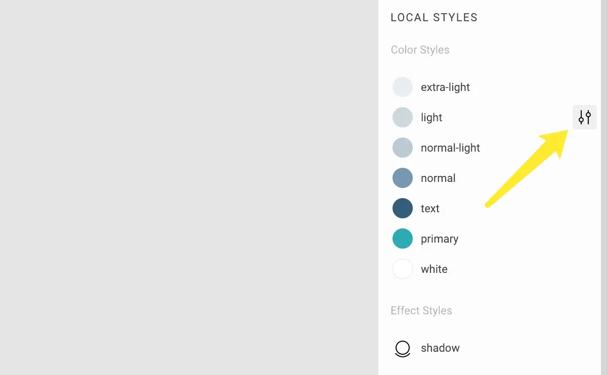 样式库是可以调整的,点击画布中的空白区域,就能够看到右边显示了我添加过的所有样式。点击右侧调整按钮就可以进去调节它,不过需要注意的是,这样会改变全局所有用到这个样式的元素外观。