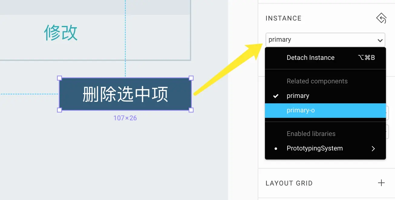 这样,在使用该组件时,我就可以点击右侧属性面板中的 INSTANCE(组件实例),在下拉菜单中的 Related components(相关组件)里面快速切换。