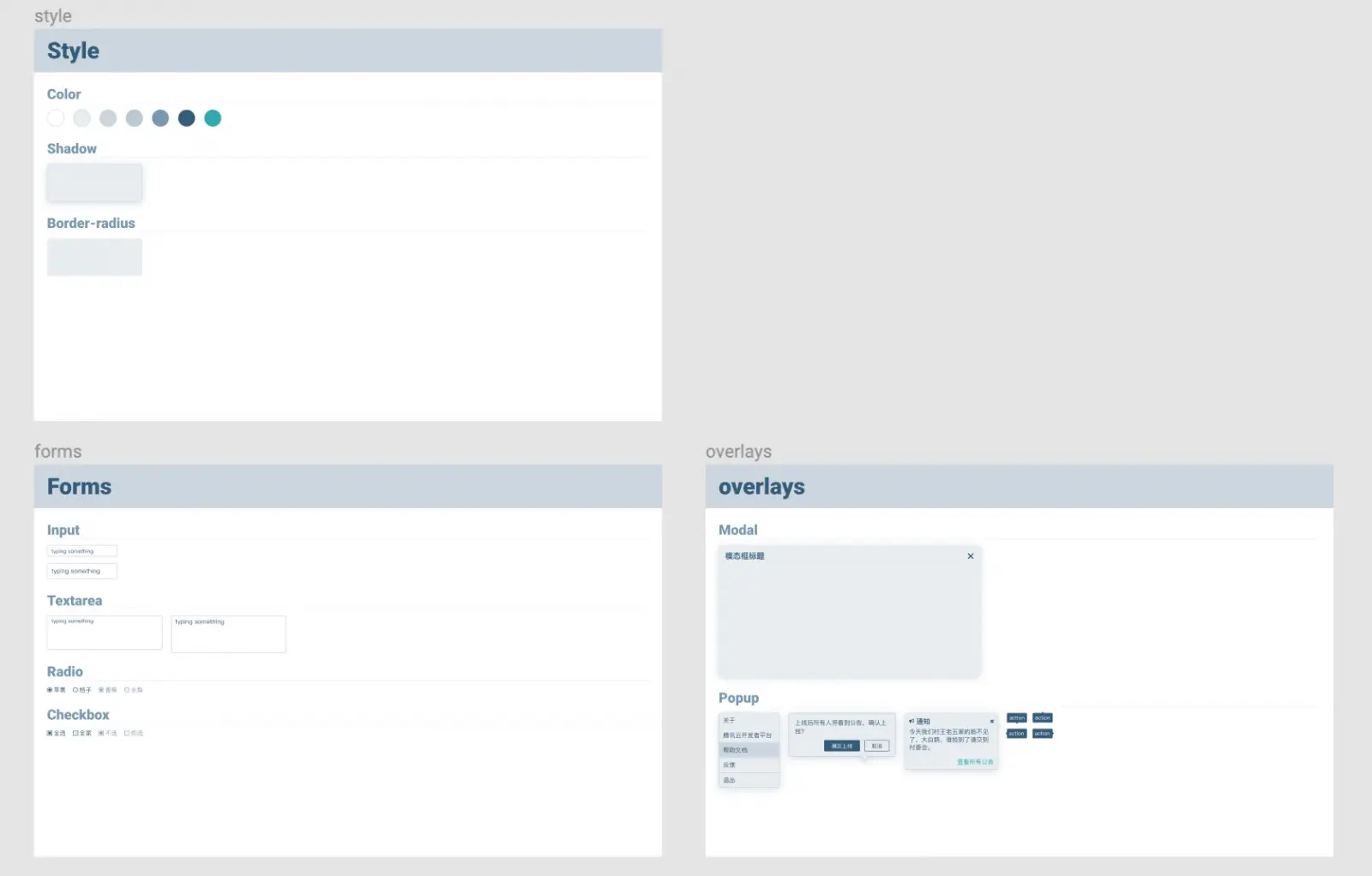 我没有一开始就创建一套组件库,因为组件一般都是跟着业务走的,刚开始时,我还不知道会有哪些组件。因此,我是在做原型时候有意识地把可以复用的元素提取为组件,并不断地补充完善。