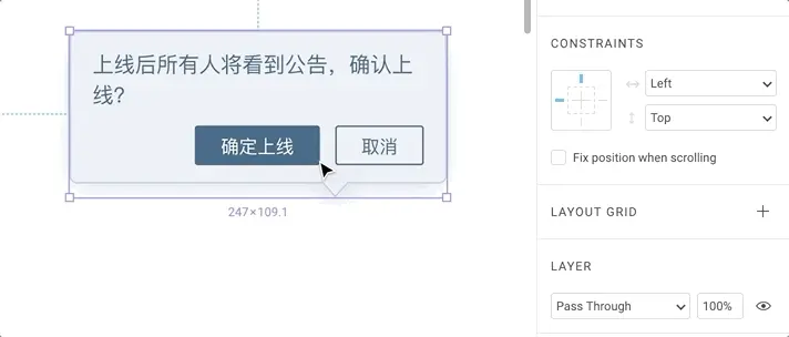 组件允许进行嵌套,我们可以凭此创建更复杂的组件。此外,我们还可以给组件中的元素设置 CONSTRAINTS(响应式边界),确保组件尺寸变化时,其中的元素仍可正常地布局。