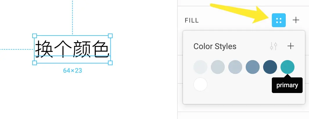 我们先设定一些基本样式,方便后面使用。当我们在右侧属性面板中为元素添加样式后,就可以点击属性面板中带有四个圆点的图标,再点击加号,将其加入样式库。通常,在色值填充、文本、描边和效果右边都有这个图标,也就是说它们都可以被添加进样式库。