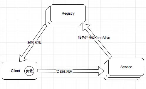 服务端把服务的地址信息保存到Registry, 然后定时的心跳检查,或者定时的重新注册服务。客户端监听Registry,最好是把服务信息保存到本地,监听服务的变动,更新缓存。当调用服务端的接口是时,根据客户端的服务列表和负载算法选择服务端进行通信。