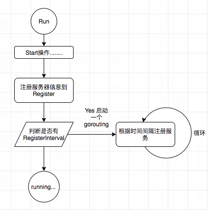 Run()方法中有个go s.run(ex) 方法的调用,这个方法就是根据我们设置interval去重新注册服务,当然比较保险的方式是我们把服务的ttl也设置上,这样当服务在未知的情况下崩溃,到了ttl的时间Register服务也会自动把信息删除掉。