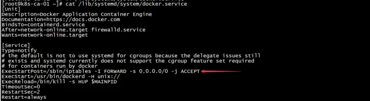 ExecStartPost=/sbin/iptables -I FORWARD -s 0.0.0.0/0 -j ACCEPT- 三台机器启动服务