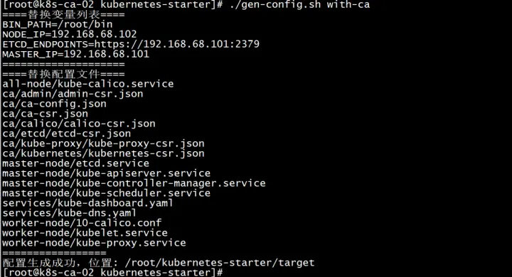 跟基础环境搭建一样,我们需要生成kubernetes-with-ca的所有相关配置文件