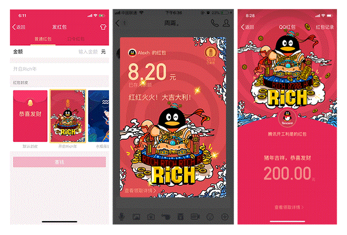 在2019年春节QQfamily整个福卡运营中,我们从用户新年的期许出发,结合春节传统习俗,完成了线上线下整体的包装和运营,受到了大家的喜欢。新的一年,有更多有趣的事情在发生。也祝大家新年“猪”事顺意,开启鸿运rich年。