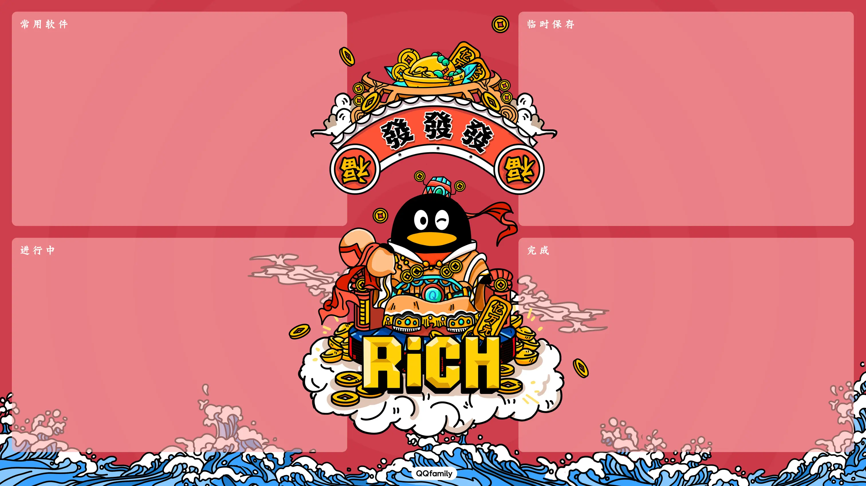 那么我们就先从最质朴的愿望开始吧——求财,2018年这方面似乎有点惨淡,所以QQ脚踩祥云化身财神爷,给各位带来好财气。