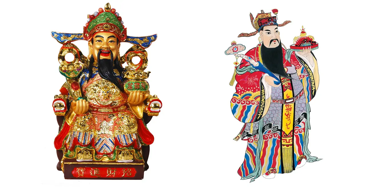 这样一来我们基本的板式和风格就确定下来了,整套福卡的风格参考中国的传统年画,主体神仙在画面正中,周围环绕各种元素,形成统一的构图版式,也方便后续在别的场景延展。