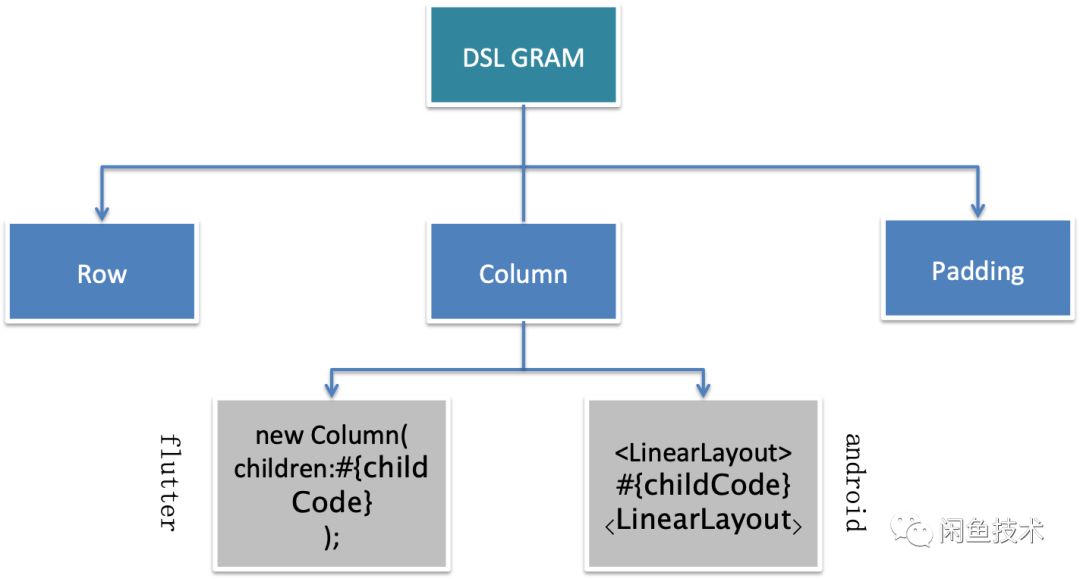 我们将UI2CODE生成的DSL TREE进行代码模板化匹配,代码模板的内容由资深的flutter技术专家来定义,它代表目前我们发现的最优代码实现方案 。