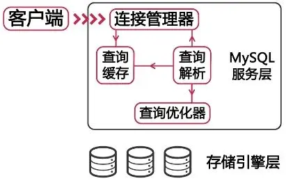 分三层:客户端->服务层->存储引擎
