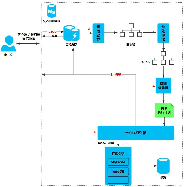 通过上图可以清晰的了解到MySQL查询执行的大致过程: