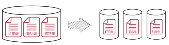 对一个库中的相关表进行水平拆分到不同实例的数据库中: