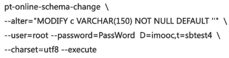alter table sbtest4 modify c varchar(150) not null default ''