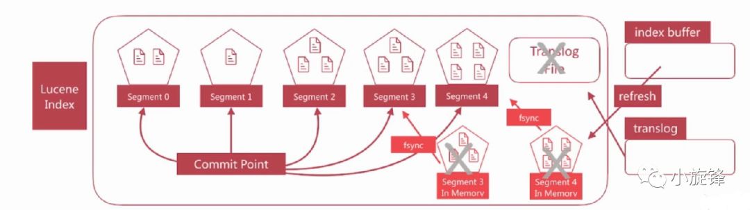 将index buffer清空,其中的文档生成一个新的segment,相当于一个refresh操作