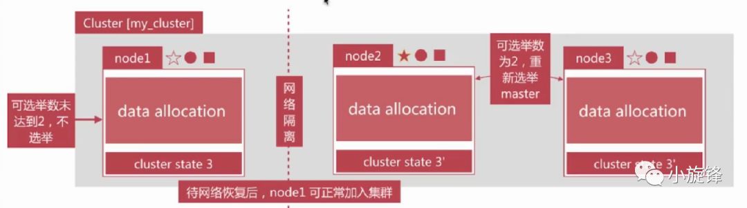 discovery.zen.minimun_master_nodes为quorum即可避免脑裂问题
