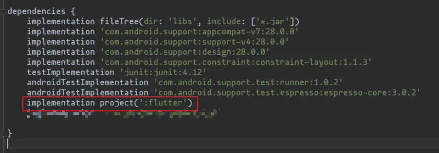 implementation project(':flutter')如上。添加完之后,准备工作就完成了。