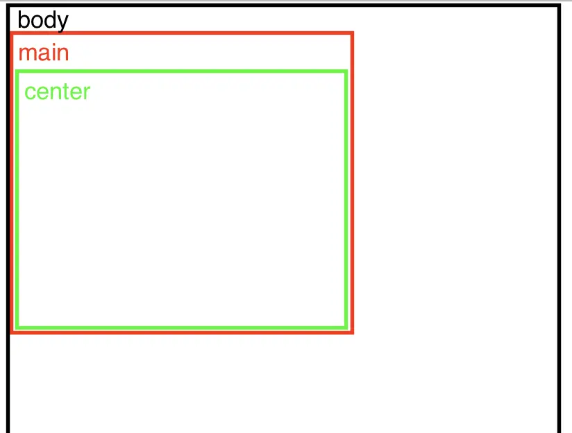 1、将#main与#center全部设置为inline-block,将包裹他们的内容:
