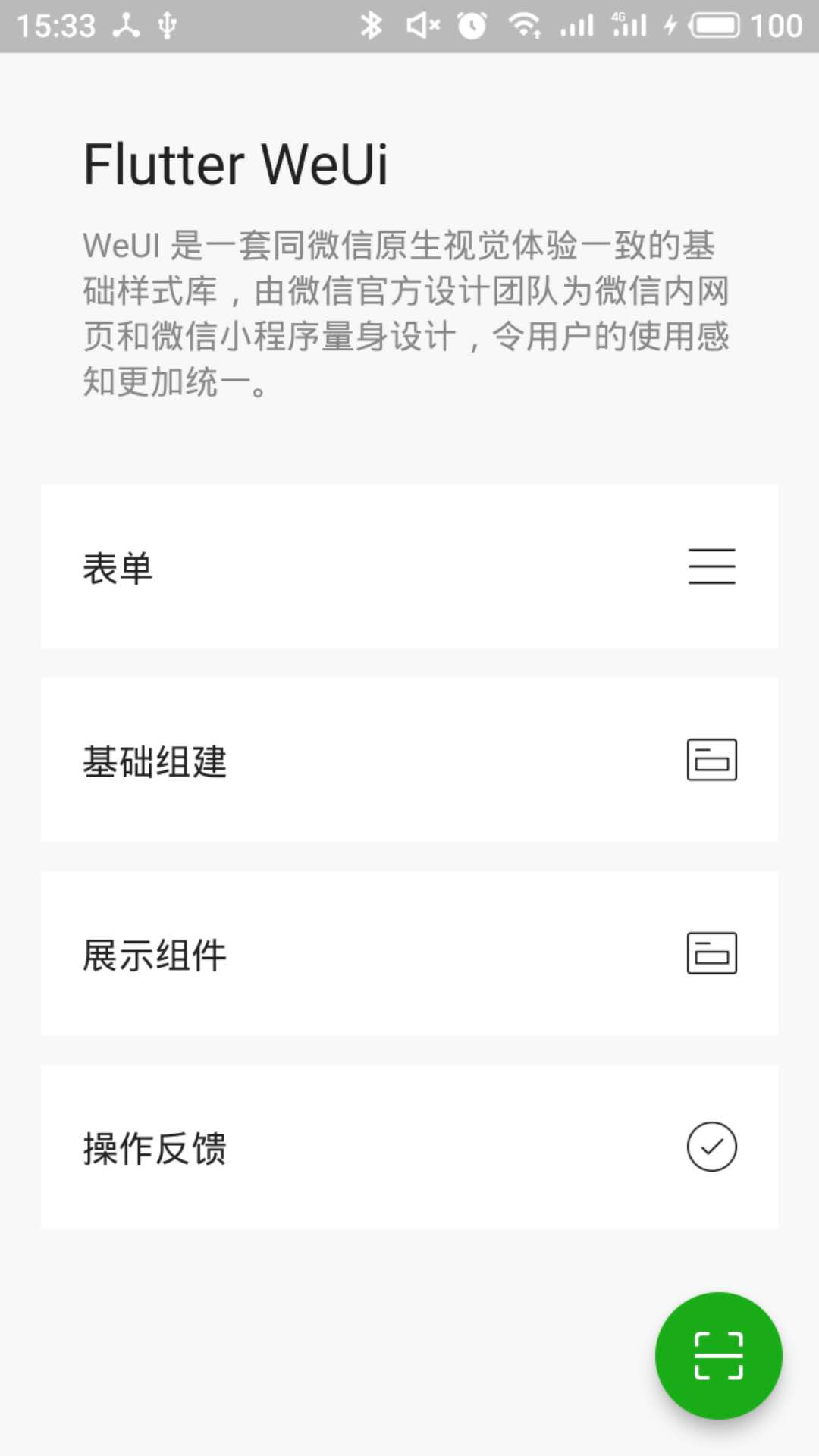 使用flutter实现的weui框架 allan_hx 2019-02-26 2,710 阅读1分钟 原文链接: github.com 用flutter实现的weui框架, 实现了weui大部分的组件, 同时支持android 和 ios, 欢迎大家使用和交流 app下载 android ios 暂无下载地址, 需手动执行安装 文档 预览图 安装 weui: 0.0.1 如何运行案例 1. clone 代码 git clone https://github.com/allan-hx/flutter-weui.git 2. 安装依赖 flutter packages get 3. 进入flutter-weui-example目录 执行以下命令 flutter run 后续计划 文档编写 代码优化 pick和upload组件开发