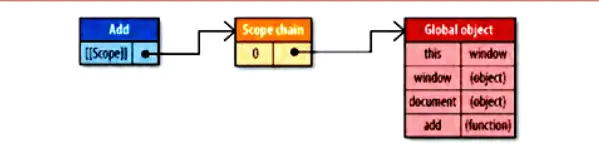 - javascript内部属性[[Scope]]包含一个函数被创建的作用域中对象的集合。此集合被称为函数的作用域链,它决定哪些数据可由函数访问。此函数作用域链中的每个对象被称为一个可变对象,每个可变对象都以“键值对”的形式存在。