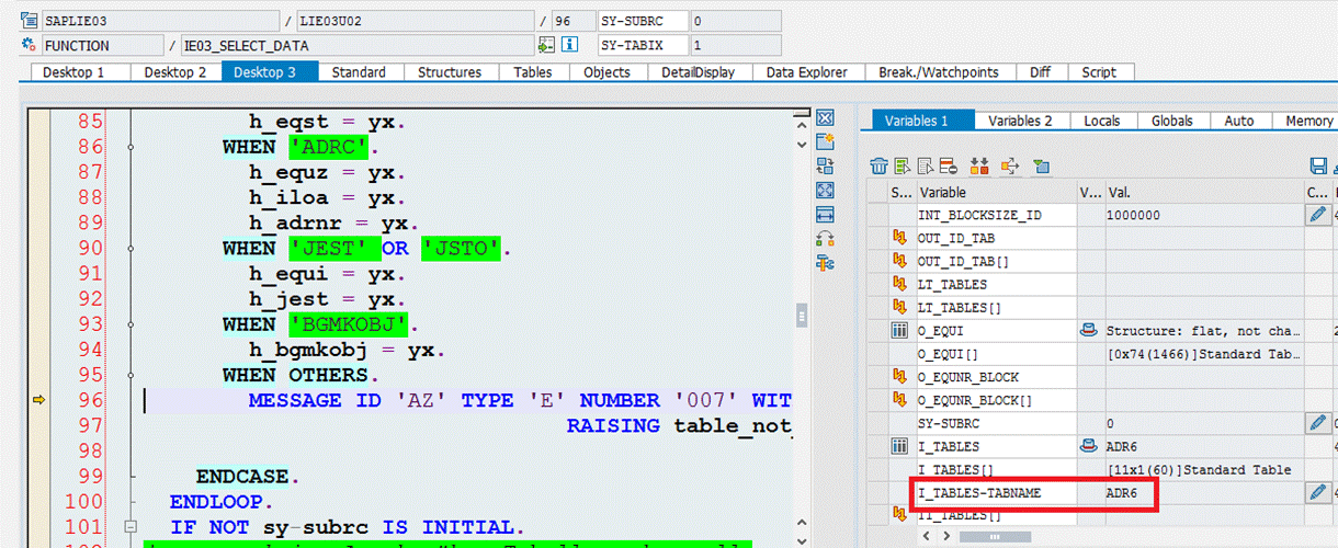 上图右边调试窗口里出现了ADR6这个不支持的表,结果就进入后面的WHEN OTHERS分支进行错误处理了。