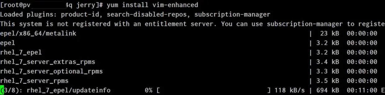 使用命令行yum install vim-enhanced下载vi的增强版本: