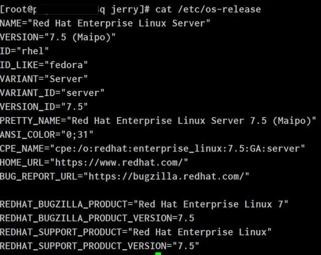 首先用命令行cat /etc/os-release查看当前linux系统的类型,发现为Red Hat: