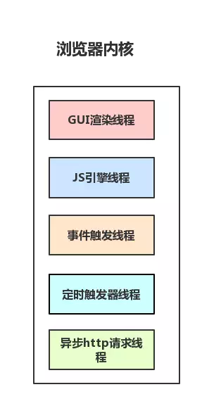 可以看到,里面的JS引擎是内核进程中的一个线程,这也是为什么常说JS引擎是单线程的。