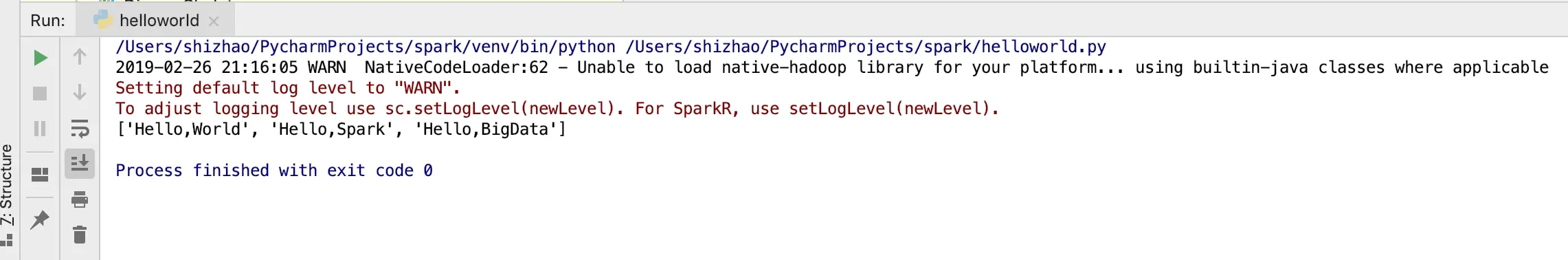 helloWorld = sc.parallelize(["Hello,World","Hello,Spark","Hello,BigData"]).collect()