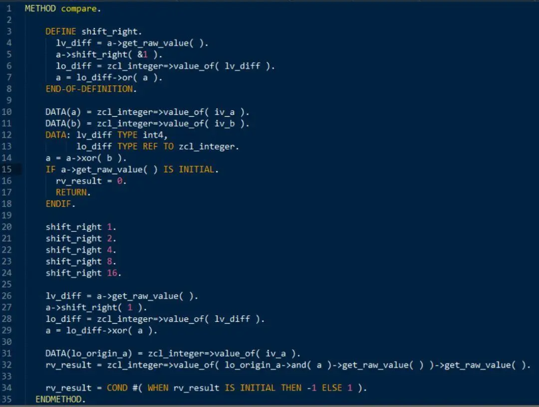 我用一个尺寸为32的ABAP内表存储一个32位整数的每一个bit的值,然后基于这个内表模拟了整数的与或非以及异或操作,还有按位左移,右移。