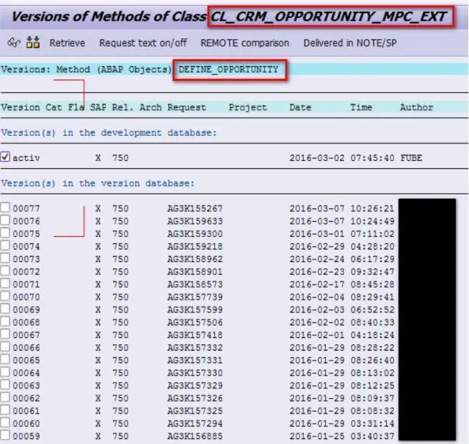 在实际工作中,SAP的开发人员经常需要做类似的事情,比如分析一个bug,最后定位到是引入了某一行代码引起的,然后就需要找到是哪一个请求号对应的版本引入的这行有问题的代码。