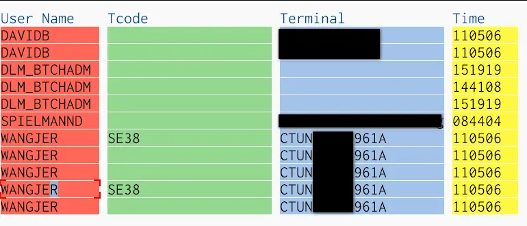 执行这个工具,会看到当前系统在线用户列表和每个用户正在使用的事务码。