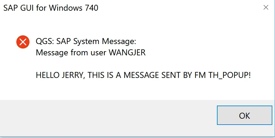 双击某个用户名称,他/她的SAPGUI里就会出现一个弹出框,上面显示一条预先指定好的文本,比如: