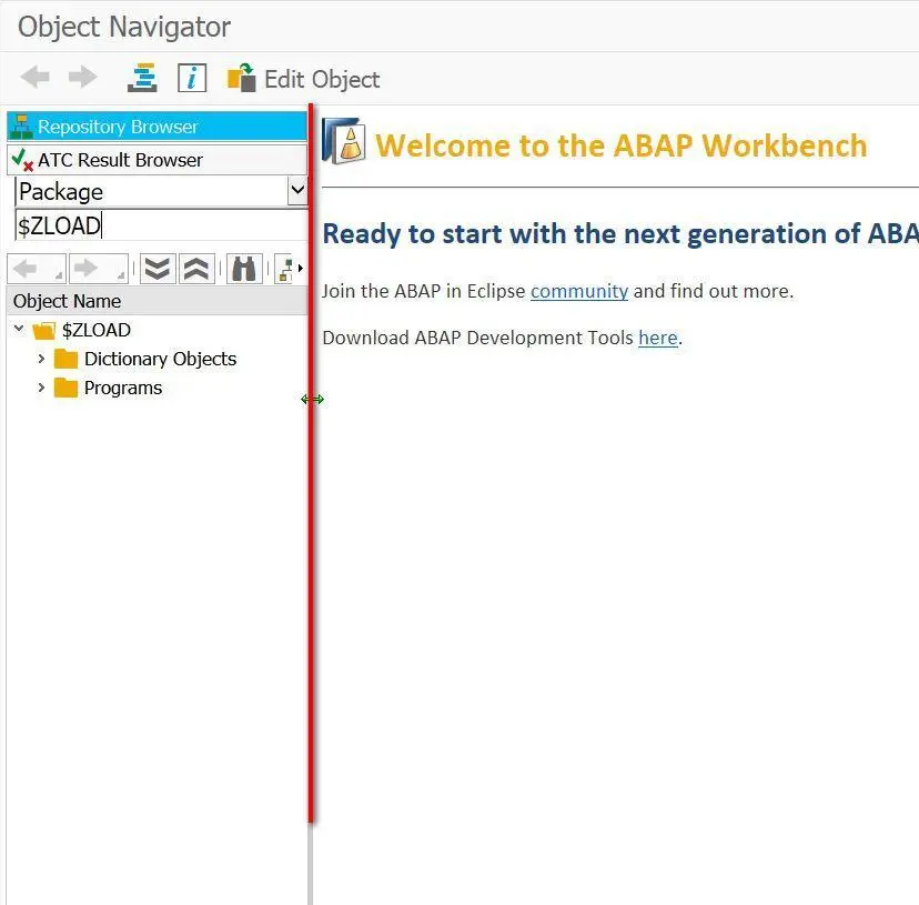 一旦把它拖到最左边的极限位置后,将无法再调整其位置了。如下图这样,因为左边对象列表的宽度实在太窄,此时SE80其实已经没有办法使用了。