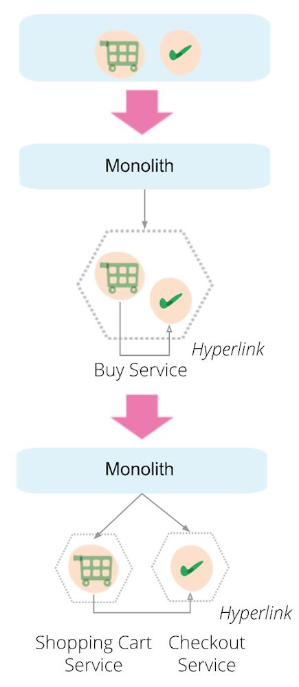 重构教导我们要“小步前行”,但真正的意图是要保持重构步伐的原子性(atomic),这样就能保证进可攻退可守的态势。单体架构向微服务架构的演进也需要遵循这一原则。若前进的步伐是正确的,且演进的内容是完整的,则意味着我们向着演进目标又靠近了一步;若前进的步伐出现了偏差,我们也能够轻易回滚。