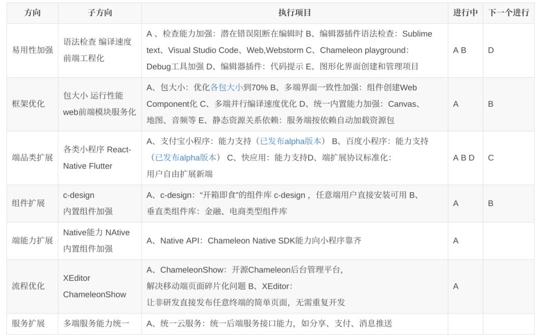 接下来的具体 roadmap 如下表所示: