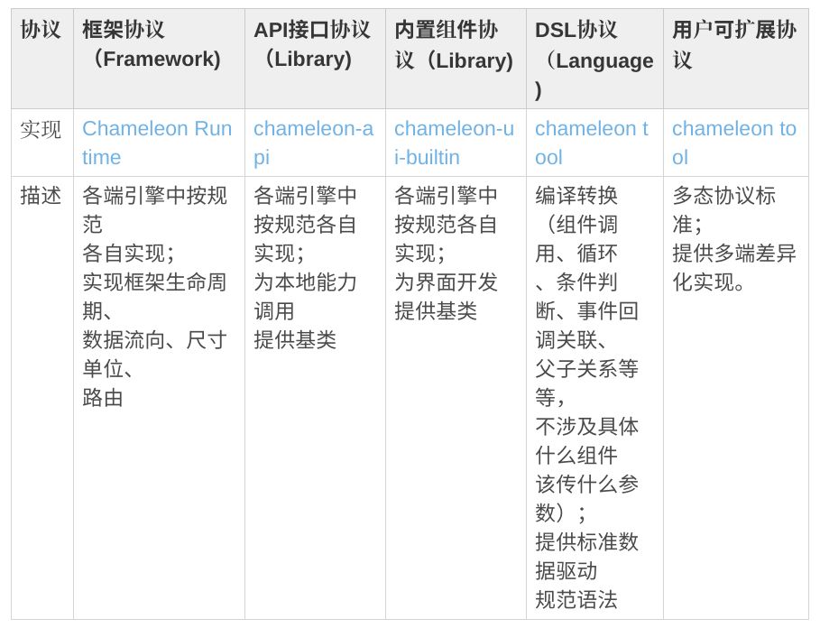 单独说到 Chameleon 与 Taro 的区别,总体上看,可以归为这样一个表: