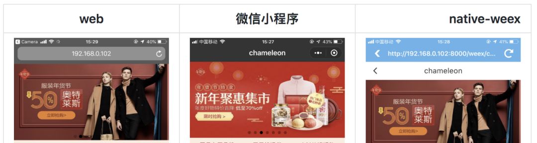所以我们选择放弃小程序渲染方案,而使用已开源的 RN/Weex 方案。