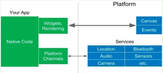 Flutter 和 RN 的最大区别在于将“JavascriptCore/V8+JS”替换成“C++ 实现的 engine+Dart 实现的 Framework+静态类型 Dart+编译成机器码”。