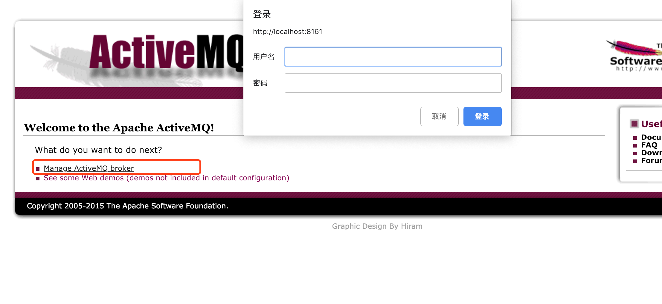 出现这个说明mq已经启动我可可以通过active默认的端口号运行https://http://localhost:8161/