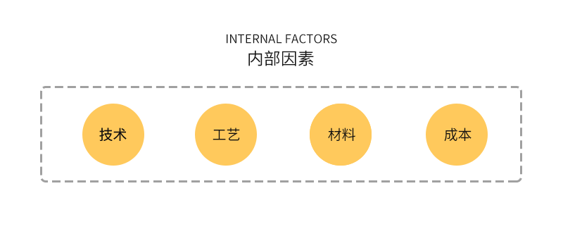 除却外部的环境因素,我们还要考虑的制作产物时所需要技术、工艺、材料、形态、结构。内部的因素其实代表了一种可能性,是一种可变通的元素组合。比如同样是防水手表,我们可以采用耐浸泡的材料,也可以运用防水工艺。(ps:在《事理学论纲》中内部因素没有成本,但是小胖认为成本其实也算是设计中应该考虑到的内在因素,所以在这里我也将其归纳了进来。)