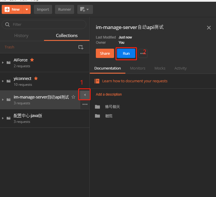 我们通常会给多个api运行测试,因为我们有很多api,或者一个测试场景由多个api所组成。所以我们会把他们添加到一个集合(Collections)当中来运行。
