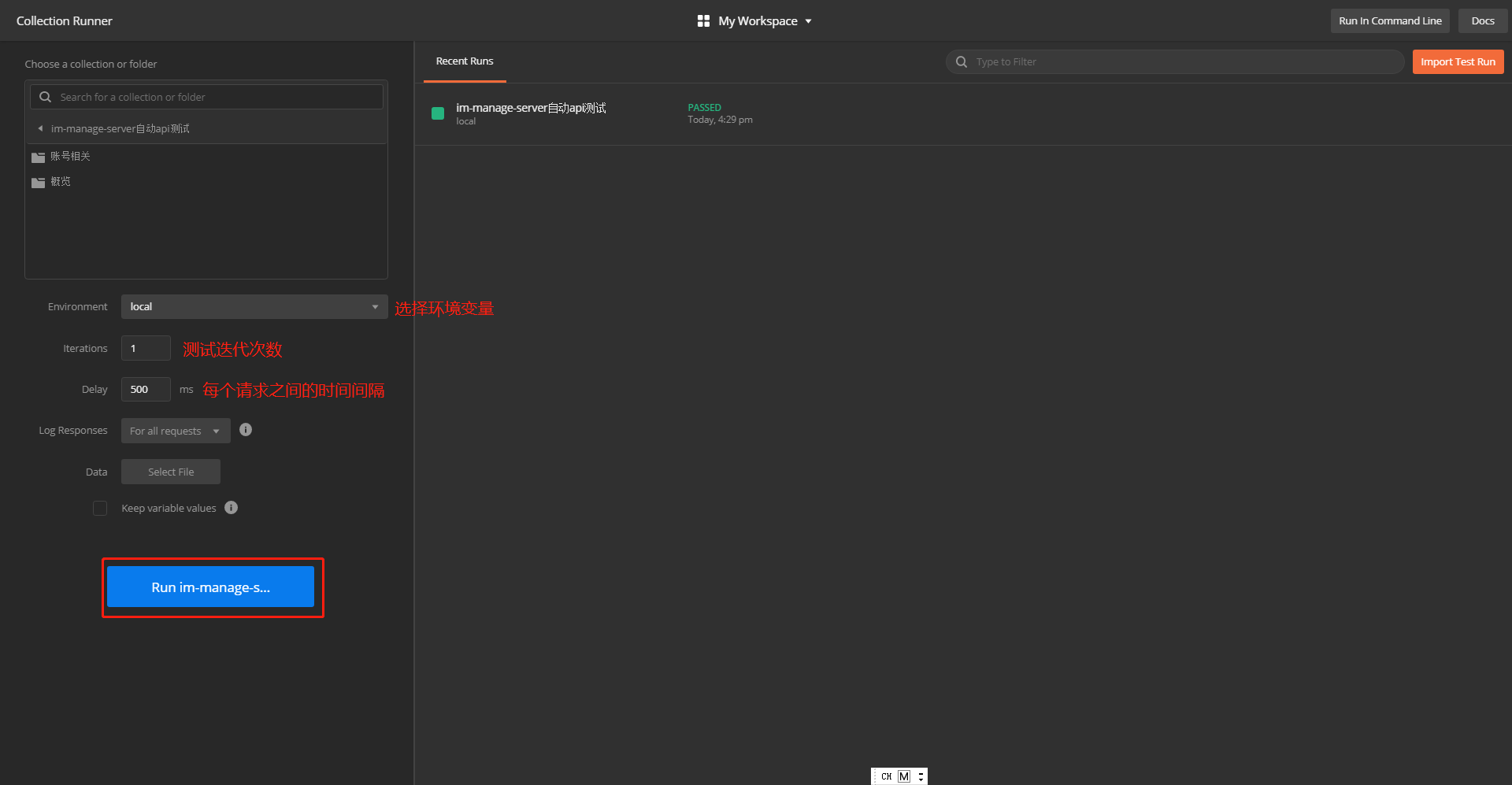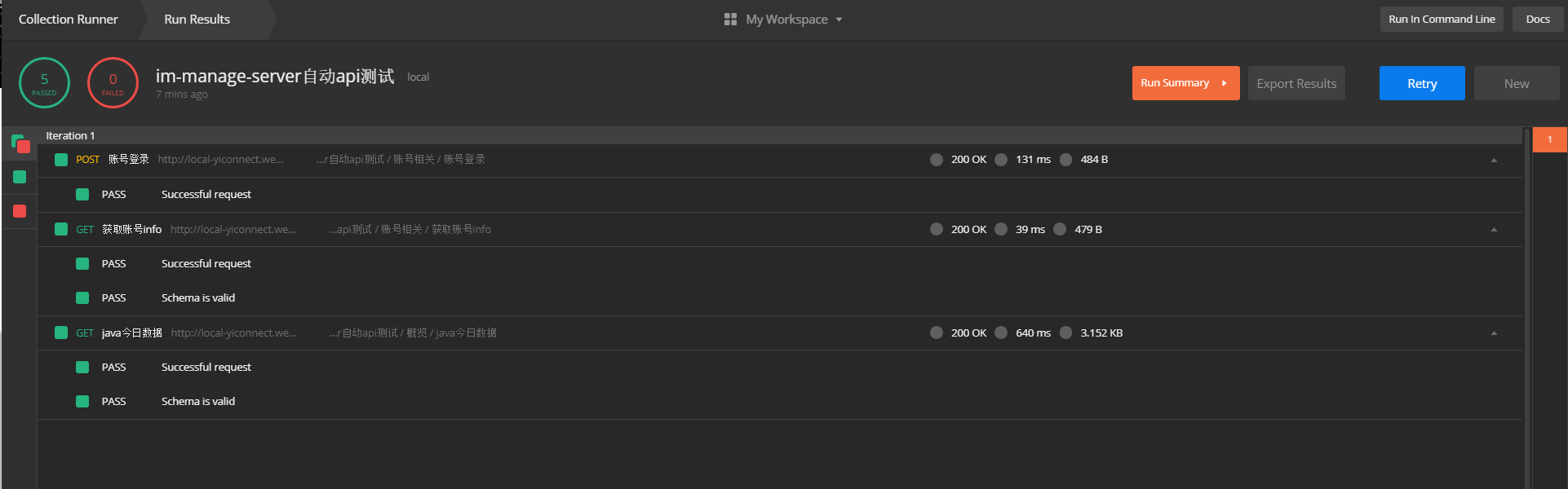 这里注意,请求是按照Collections当中的顺序线性执行。如果想改变执行顺序,可以修改Collections中的顺序,或者使用postman.setNextRequest("request_name");如果想要停止整个流程,可以执行postman.setNextRequest(null);
