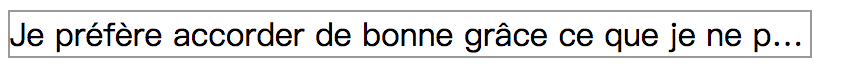 - ‘字符串’ 用来表示被截断的文本。字符串内容将被添加在内容区域中,所以会减少显示出的文本。如果空间太小到连省略号都容纳不下,那么这个字符串也会被截断。但这个属性值目前在大部分浏览器都没有被实现。